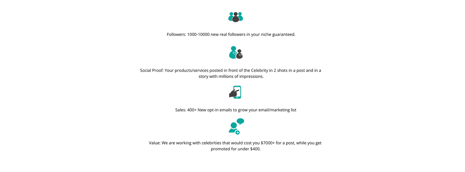 We are working with huge celebrities with over 1 million followers and 30,000+ likes per post and each campaign gets you: